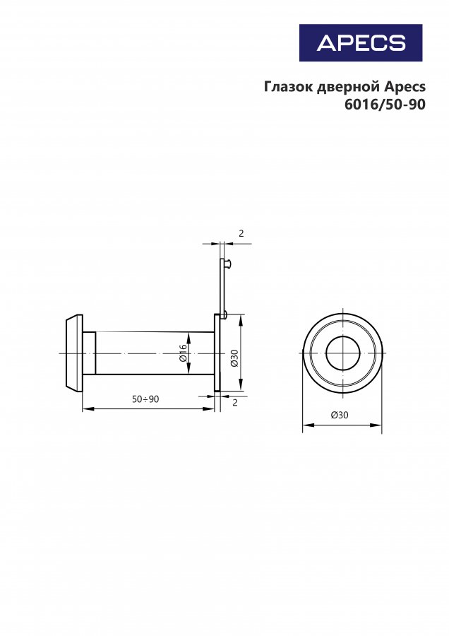 Глазок дверной Apecs 6016/50-90-CR, цены
