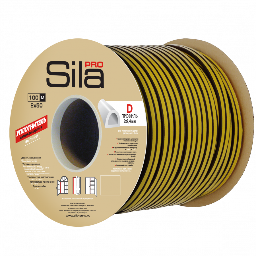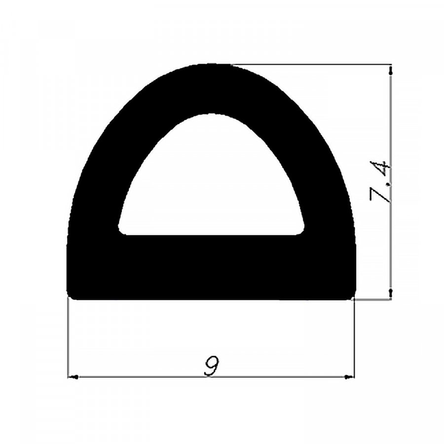 Уплотнитель для дверей EPDM D-образный 7,5х9мм, черный, самоклеящийся, рулон 100м, цены
