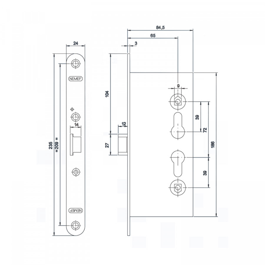 Замок дверной огнестойкий NEMEF 1901/21, антипаник, оцинкованный, цены