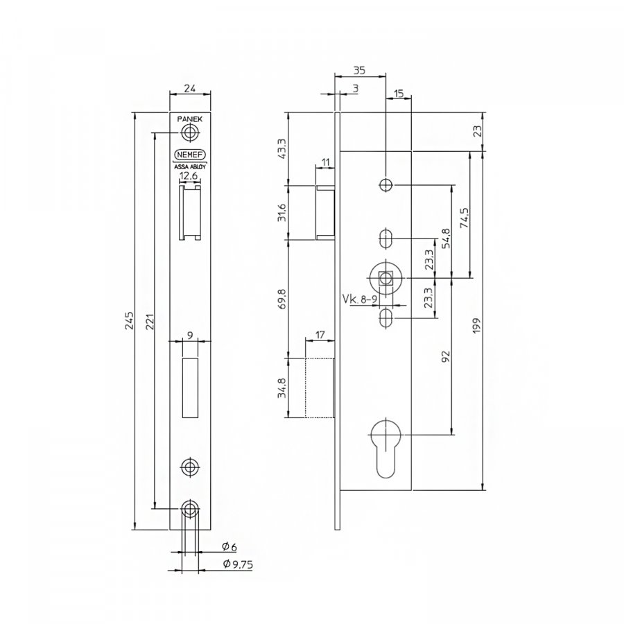 Замок дверной огнестойкий NEMEF 9673/08, антипаник, нержавеющая сталь, цены