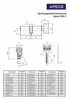 Цилиндровый механизм Apecs SM-90(35C/55)-C-NI, цены
