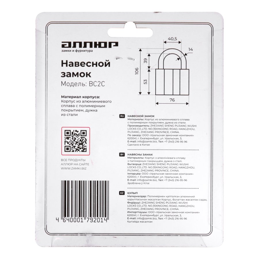 АЛЛЮР ВС2С d14мм Замок навесной, цены