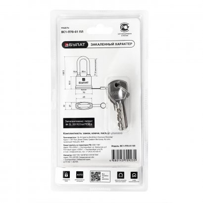 БУЛАТ ВС 1-П70-01 ПЛ всепогодный 5 кл. d=10,6мм Замок навесной, цены