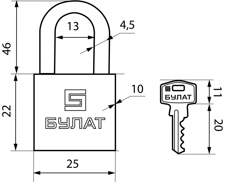 БУЛАТ ВС 1126-01 латунный d=4,5мм Замок навесной, цены