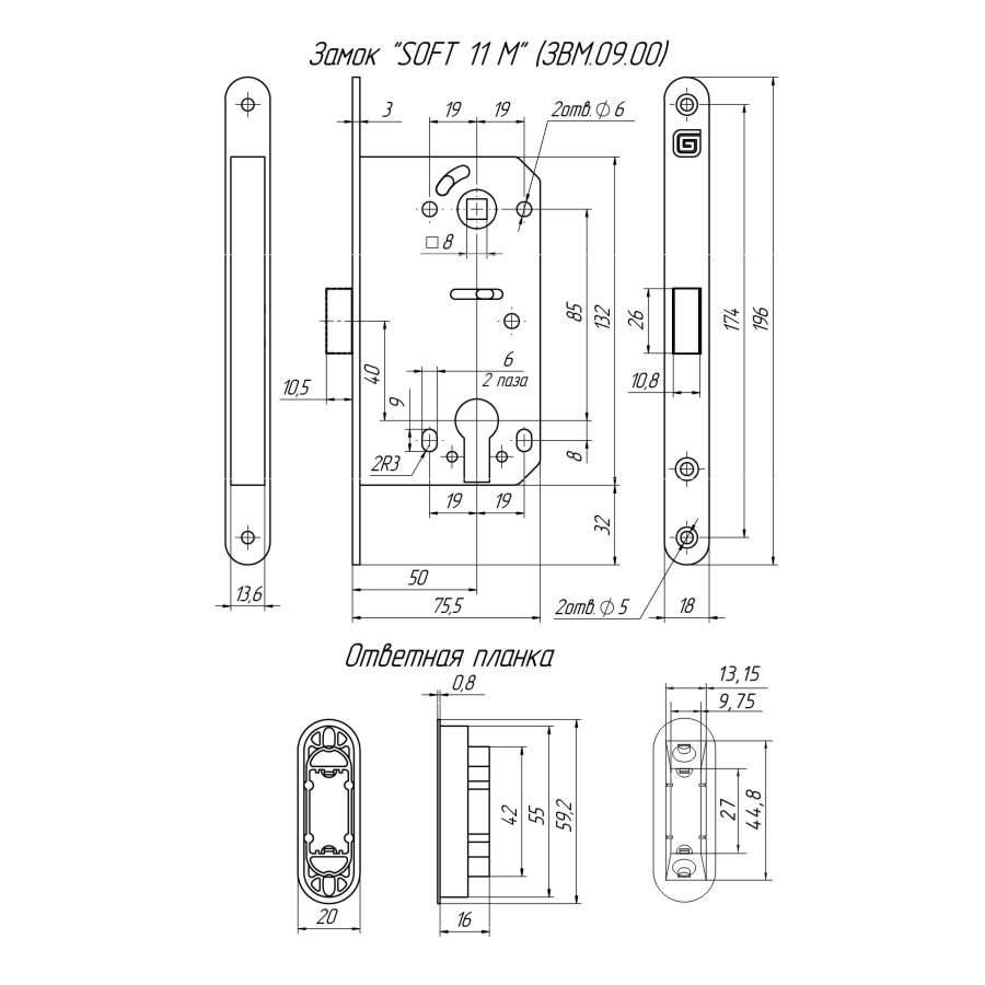 Замок дверной магнитный Гардиан Soft 11 M GRF, цилиндровый, графит, цены